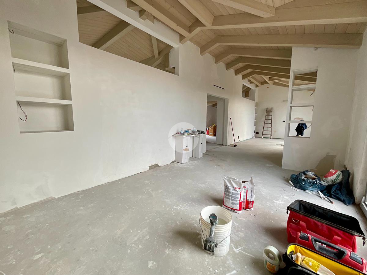 L'intero appartamento è impreziosito da eleganti travi a vista in legno di abete, che conferiscono un tocco di raffinatezza. I serramenti esterni in legno-alluminio con vetrocamera doppio isolato e vetro inferiore stratificato antisfondamento assicurano isolamento e sicurezza. Le finestre dei bagni sono opacizzate per garantire la massima privacy. Il portoncino blindato, rivestito internamente in legno e con pannello laminato plastico colorato all'esterno, è dotato di bandella retrattile paraspifferi.