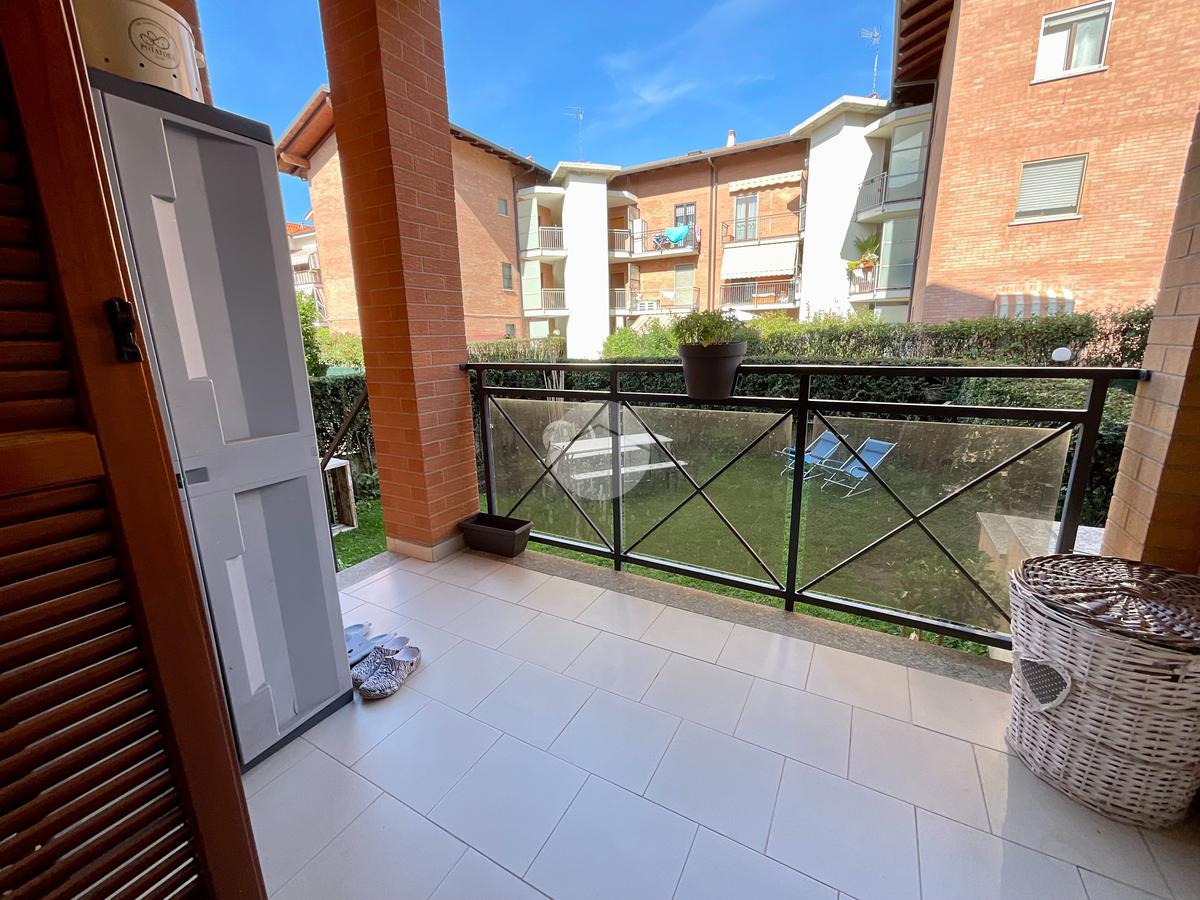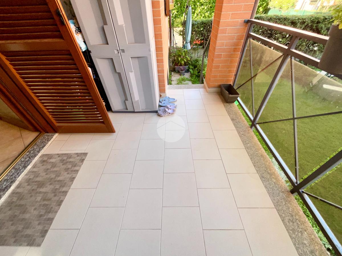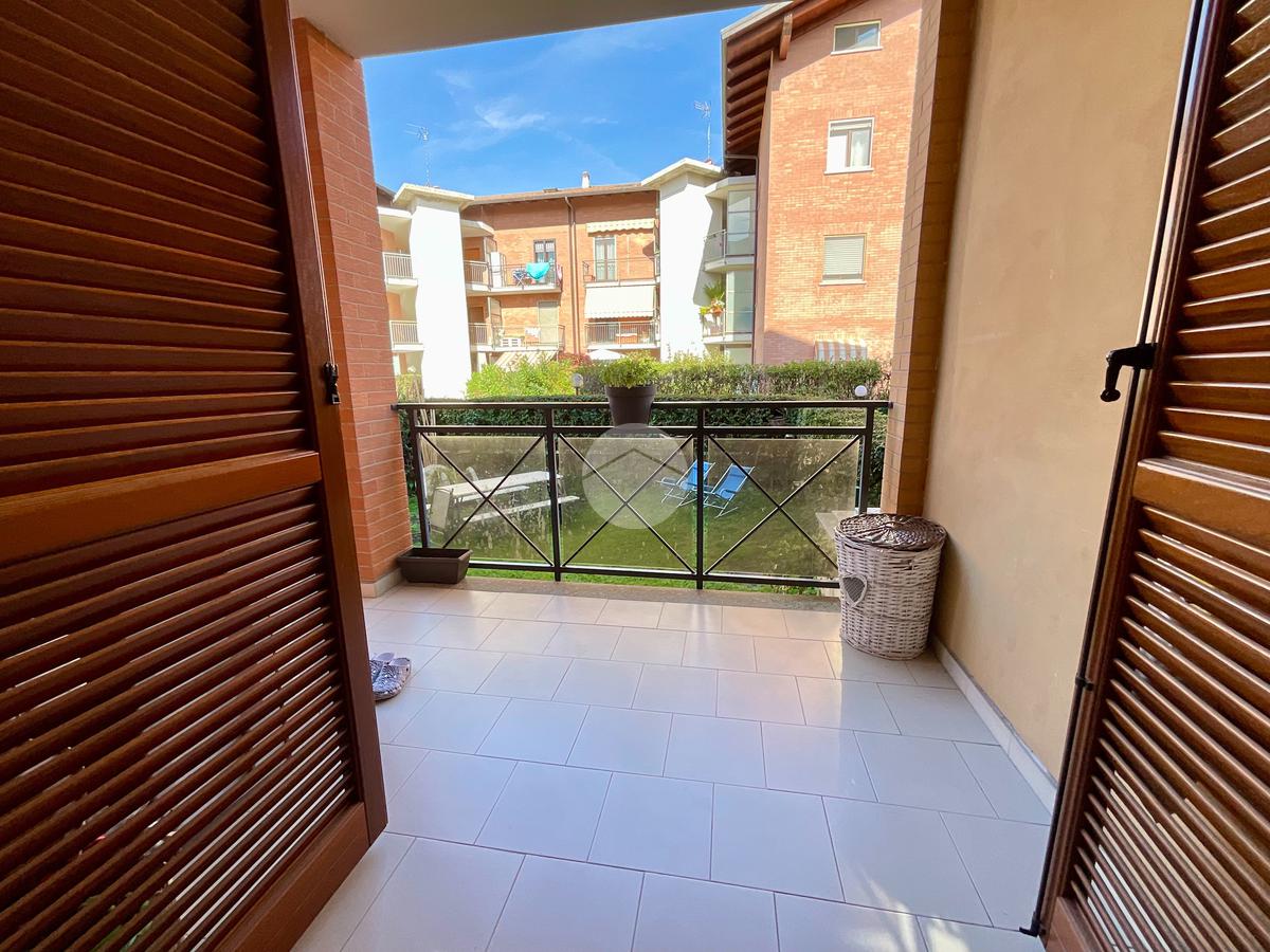 L'ingresso, protetto da portoncino blindato, si apre su un ampio e luminoso soggiorno, valorizzato da una porta finestra che conduce a un terrazzo di generose dimensioni, ideale per momenti di relax all'aperto. La cucina è abitabile e anch'essa dispone di accesso diretto a un secondo terrazzino, collegato al giardino privato di circa 70 mq: uno spazio verde perfetto per pranzi e cene all'esterno, per famiglie con bambini o amanti del giardinaggio. La zona notte, raggiungibile tramite disimpegno, è composta da due camere da letto, entrambe ben illuminate grazie alla presenza di ampie finestre.