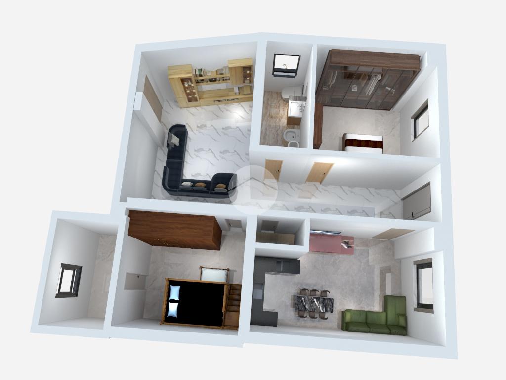 L'ingresso distribuisce in modo funzionale gli spazi: la cucina abitabile, dotata di finestra, è separata dal soggiorno doppio, particolarmente luminoso grazie a tre ampie finestre e a una porta finestra che conduce al cortile comune. In quest'area esterna è stato ricavato un angolo dedicato al relax all'aria aperta.
