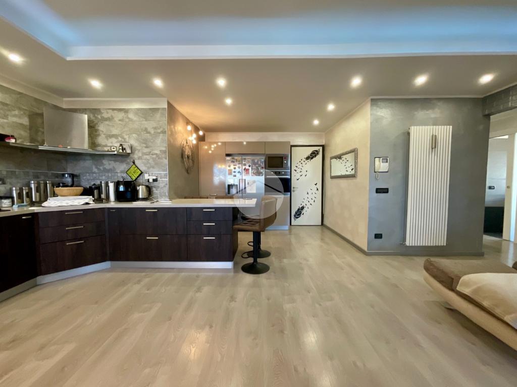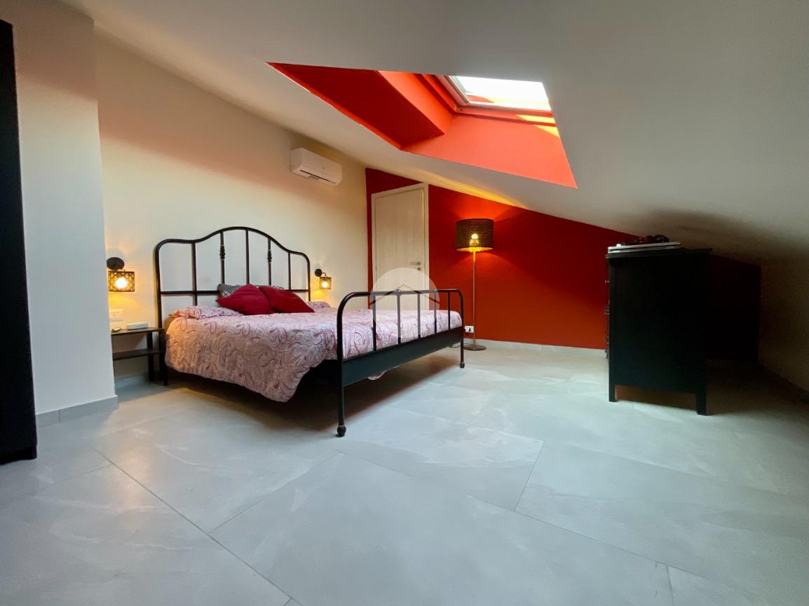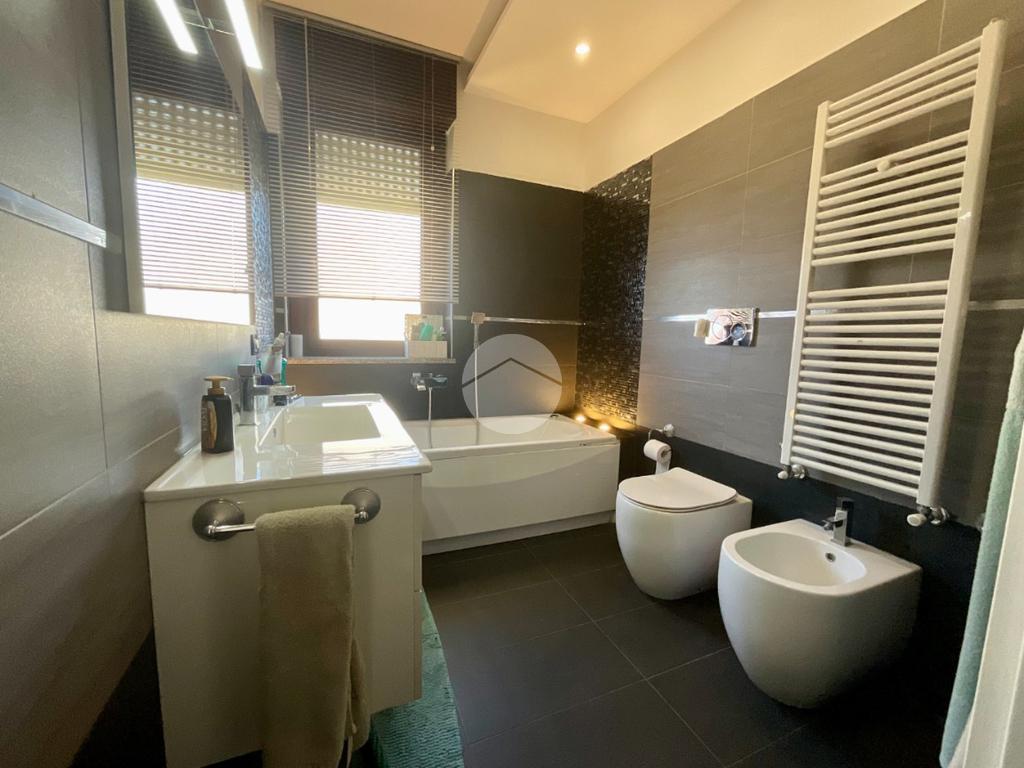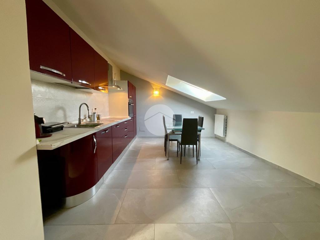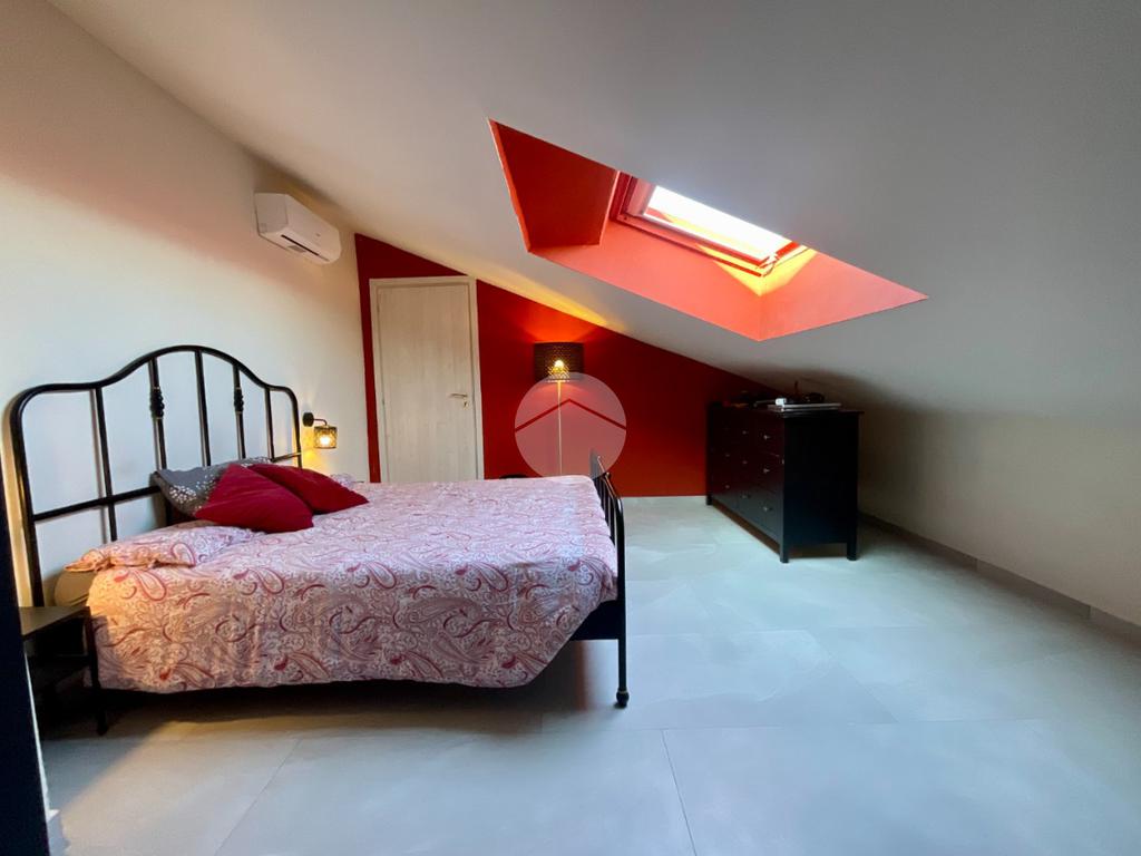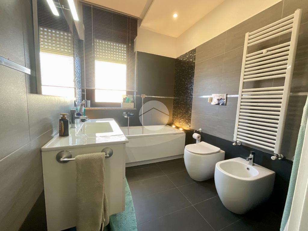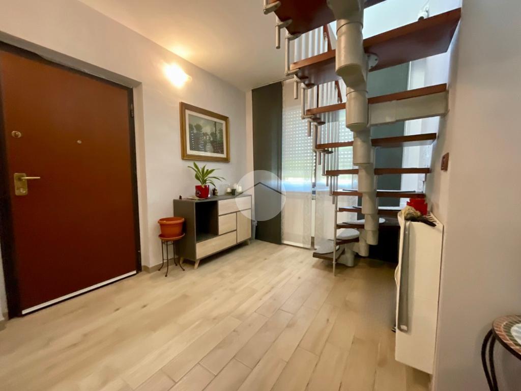 In una tranquilla palazzina di recente costruzione 2009, proponiamo in vendita un elegante appartamento disposto su due livelli, situato al secondo piano servito da ascensore. L’ingresso, tramite portoncino blindato, si apre su un disimpegno che permette l’accesso separato al piano principale e alla mansarda, grazie a due ingressi indipendenti. Il primo livello è composto da un ampio soggiorno doppio con angolo cottura, valorizzato dalla presenza di una finestra e di una porta finestra che conferiscono grande luminosità all’ambiente. Dal soggiorno si accede al balcone, condiviso con una delle due camere da letto. La zona notte comprende due camere: la prima con porta finestra e accesso al balcone, la seconda dotata di finestra e porta finestra con uscita su un terrazzino privato. Completano il piano due bagni, entrambi finestrati e completi di sanitari: uno con vasca, l’altro con doccia e predisposizione per la lavatrice. Dal disimpegno centrale, una scala in legno conduce al piano mansardato, dove troviamo un soggiorno separato dalla cucina abitabile, una camera da letto, un ulteriore bagno finestrato con doccia e sanitari, e un pratico locale lavanderia/ripostiglio. Tutti gli ambienti del piano mansardato sono ben illuminati da ampi abbaini, che garantiscono luce naturale e un ottimo ricircolo d’aria. Il riscaldamento è centralizzato con sistema di teleriscaldamento, ma la gestione è completamente autonoma È inoltre presente una dotazione completa di comfort moderni: aria condizionata in tutti gli ambienti, tapparelle elettriche, tende da sole estive e invernali. Nel 2017 l’immobile è stato oggetto di una ristrutturazione completa, con finiture eleganti e materiali di pregio, che rendono l’ambiente accogliente e pronto da abitare senza necessità di ulteriori interventi. Completano la proprietà un box auto doppio e una cantina.