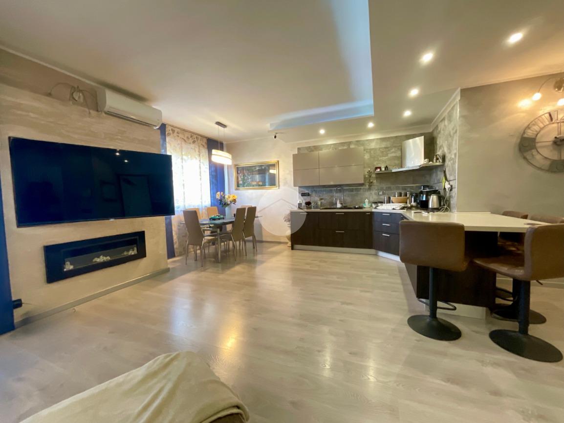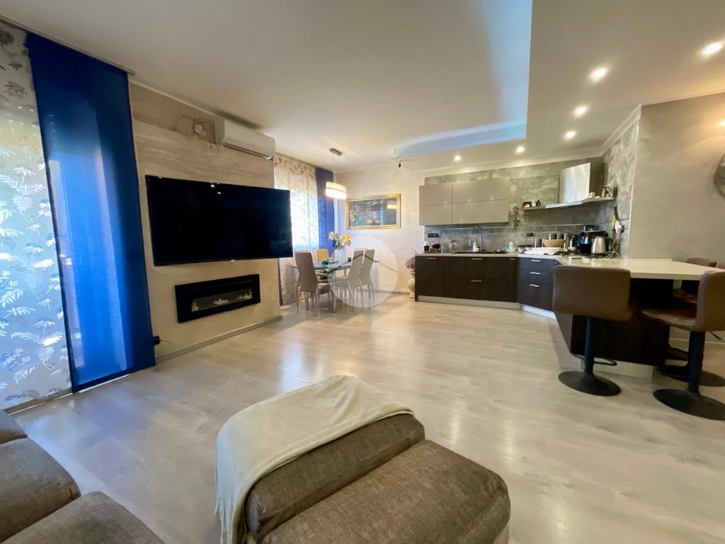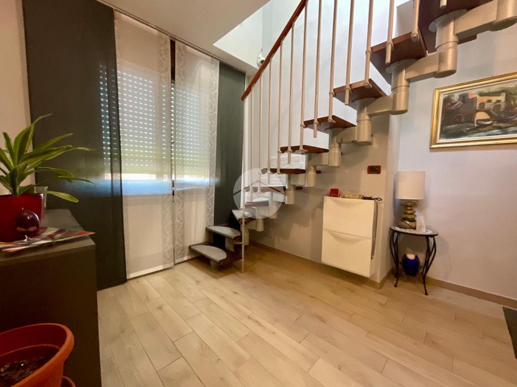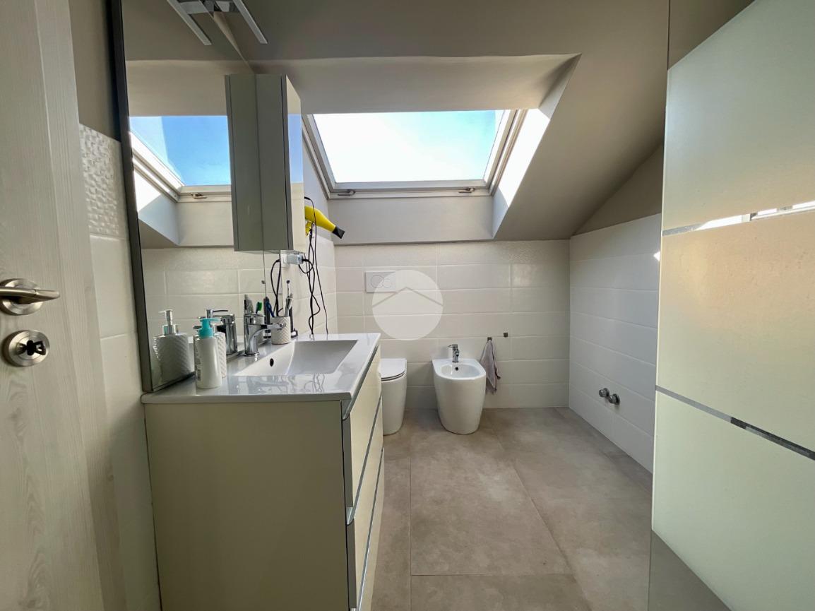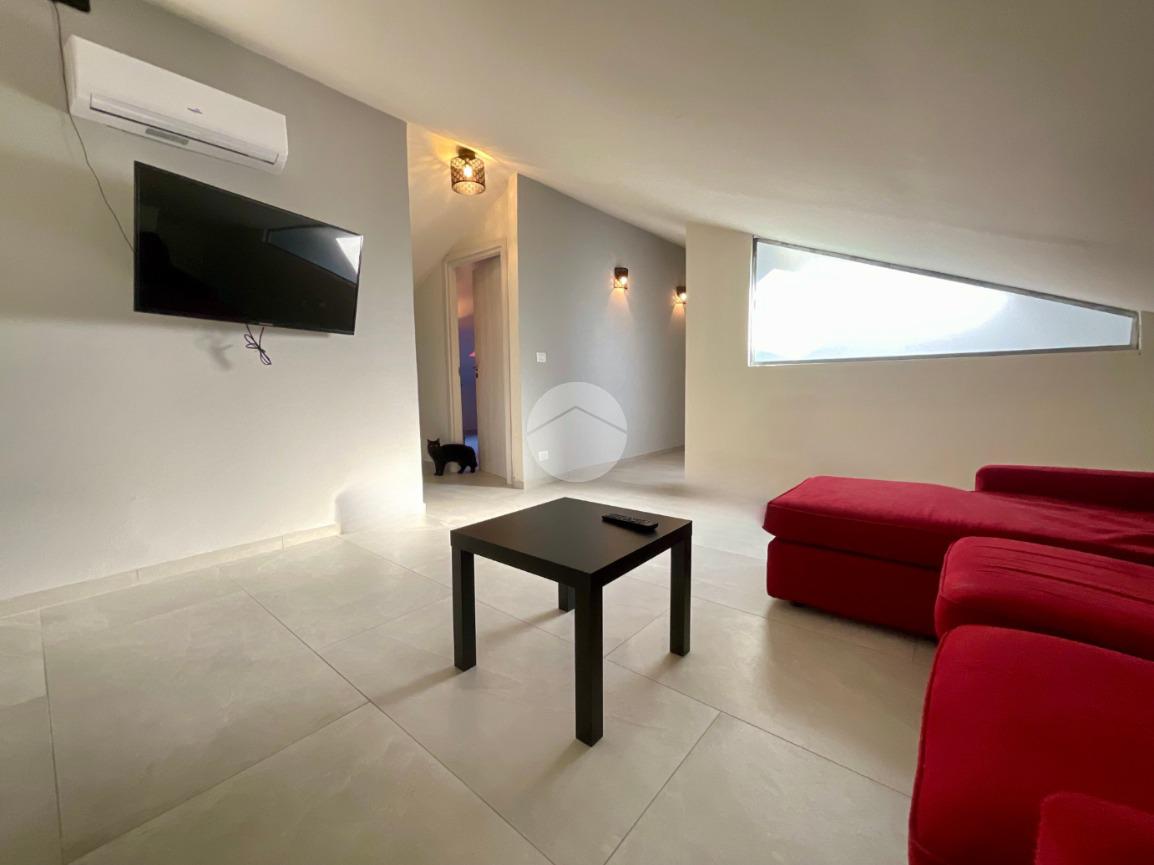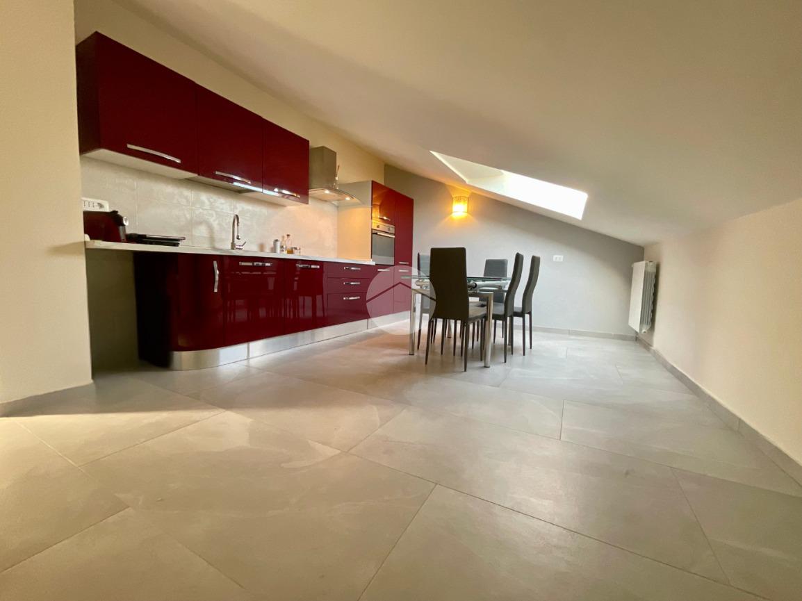 In una tranquilla palazzina di recente costruzione 2009, proponiamo in vendita un elegante appartamento disposto su due livelli, situato al secondo piano servito da ascensore. L’ingresso, tramite portoncino blindato, si apre su un disimpegno che permette l’accesso separato al piano principale e alla mansarda, grazie a due ingressi indipendenti. Il primo livello è composto da un ampio soggiorno doppio con angolo cottura, valorizzato dalla presenza di una finestra e di una porta finestra che conferiscono grande luminosità all’ambiente. Dal soggiorno si accede al balcone, condiviso con una delle due camere da letto. La zona notte comprende due camere: la prima con porta finestra e accesso al balcone, la seconda dotata di finestra e porta finestra con uscita su un terrazzino privato. Completano il piano due bagni, entrambi finestrati e completi di sanitari: uno con vasca, l’altro con doccia e predisposizione per la lavatrice. Dal disimpegno centrale, una scala in legno conduce al piano mansardato, dove troviamo un soggiorno separato dalla cucina abitabile, una camera da letto, un ulteriore bagno finestrato con doccia e sanitari, e un pratico locale lavanderia/ripostiglio. Tutti gli ambienti del piano mansardato sono ben illuminati da ampi abbaini, che garantiscono luce naturale e un ottimo ricircolo d’aria. Il riscaldamento è centralizzato con sistema di teleriscaldamento, ma la gestione è completamente autonoma È inoltre presente una dotazione completa di comfort moderni: aria condizionata in tutti gli ambienti, tapparelle elettriche, tende da sole estive e invernali. Nel 2017 l’immobile è stato oggetto di una ristrutturazione completa, con finiture eleganti e materiali di pregio, che rendono l’ambiente accogliente e pronto da abitare senza necessità di ulteriori interventi. Completano la proprietà un box auto doppio e una cantina.