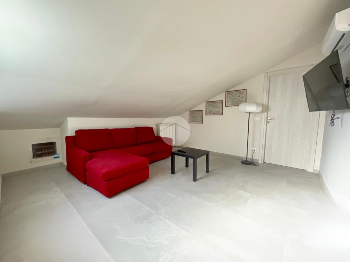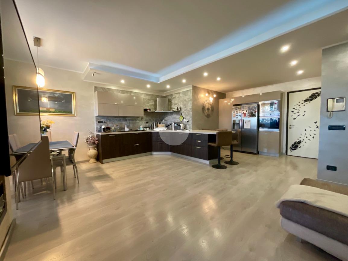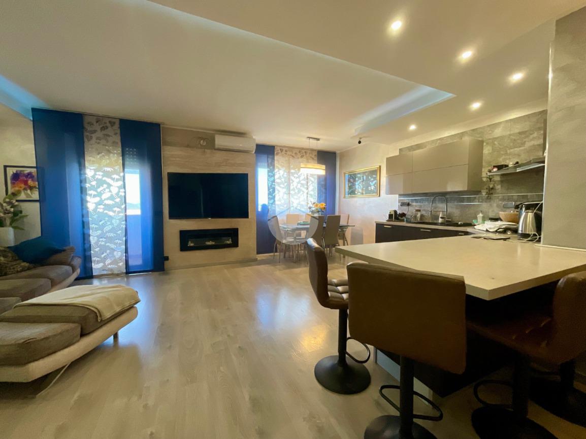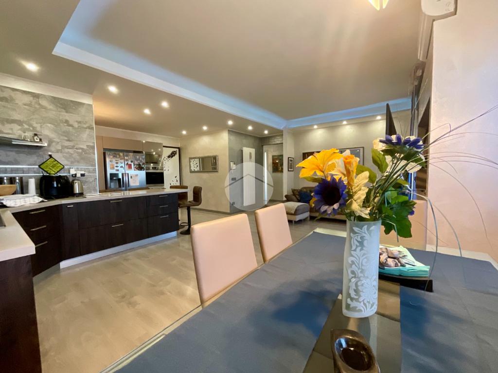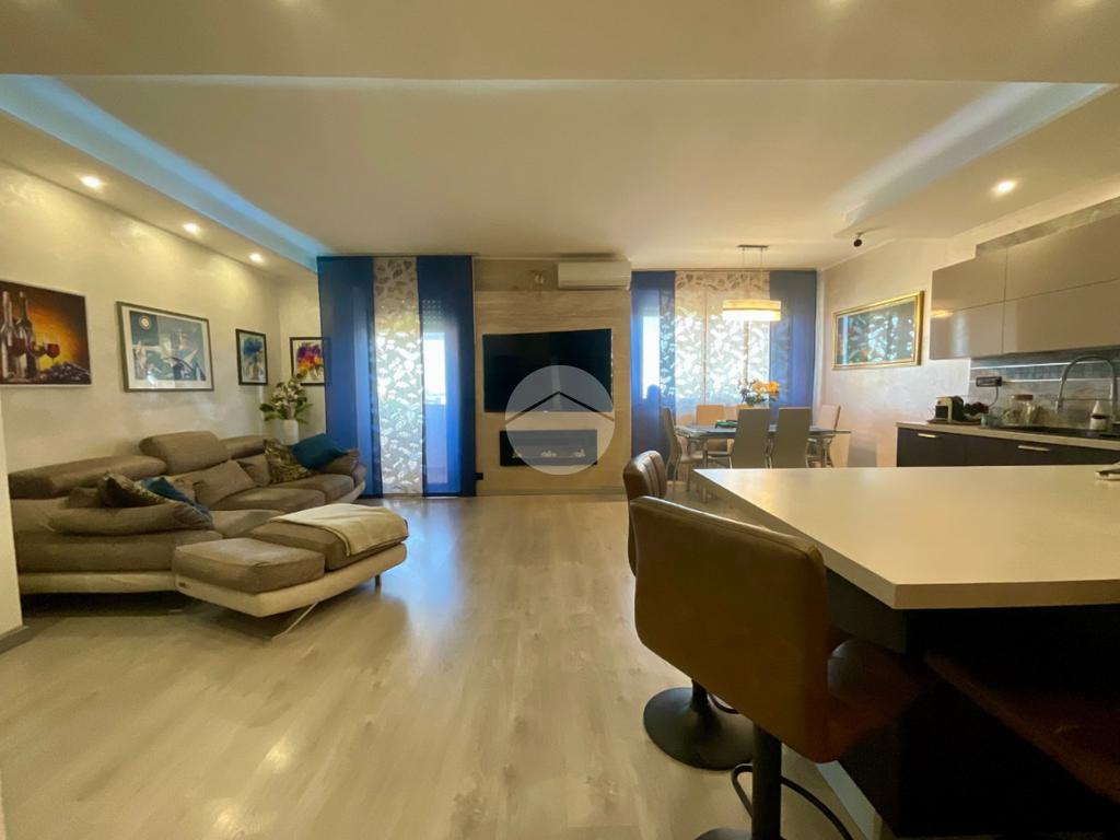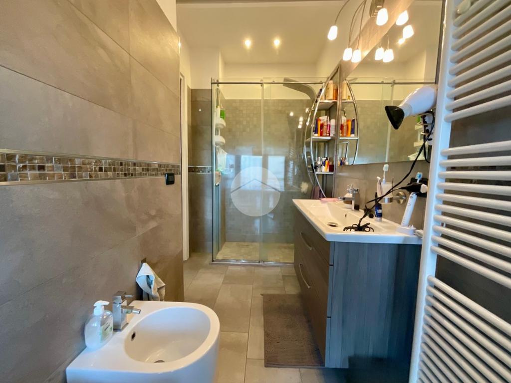 In una tranquilla palazzina di recente costruzione 2009, proponiamo in vendita un elegante appartamento disposto su due livelli, situato al secondo piano servito da ascensore. L’ingresso, tramite portoncino blindato, si apre su un disimpegno che permette l’accesso separato al piano principale e alla mansarda, grazie a due ingressi indipendenti. Il primo livello è composto da un ampio soggiorno doppio con angolo cottura, valorizzato dalla presenza di una finestra e di una porta finestra che conferiscono grande luminosità all’ambiente. Dal soggiorno si accede al balcone, condiviso con una delle due camere da letto. La zona notte comprende due camere: la prima con porta finestra e accesso al balcone, la seconda dotata di finestra e porta finestra con uscita su un terrazzino privato. Completano il piano due bagni, entrambi finestrati e completi di sanitari: uno con vasca, l’altro con doccia e predisposizione per la lavatrice. Dal disimpegno centrale, una scala in legno conduce al piano mansardato, dove troviamo un soggiorno separato dalla cucina abitabile, una camera da letto, un ulteriore bagno finestrato con doccia e sanitari, e un pratico locale lavanderia/ripostiglio. Tutti gli ambienti del piano mansardato sono ben illuminati da ampi abbaini, che garantiscono luce naturale e un ottimo ricircolo d’aria. Il riscaldamento è centralizzato con sistema di teleriscaldamento, ma la gestione è completamente autonoma È inoltre presente una dotazione completa di comfort moderni: aria condizionata in tutti gli ambienti, tapparelle elettriche, tende da sole estive e invernali. Nel 2017 l’immobile è stato oggetto di una ristrutturazione completa, con finiture eleganti e materiali di pregio, che rendono l’ambiente accogliente e pronto da abitare senza necessità di ulteriori interventi. Completano la proprietà un box auto doppio e una cantina.