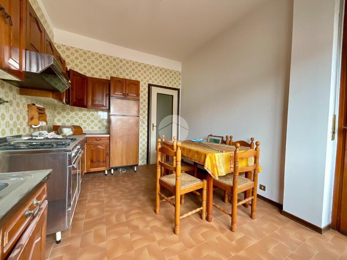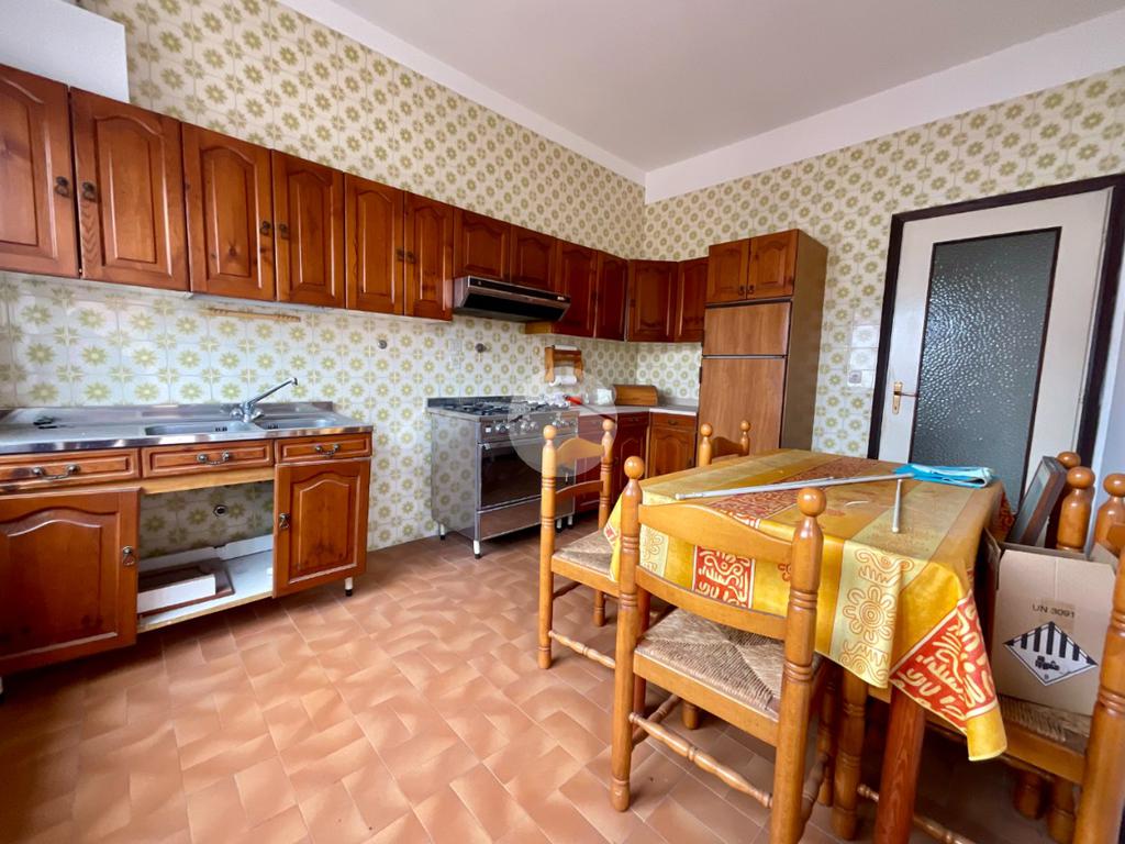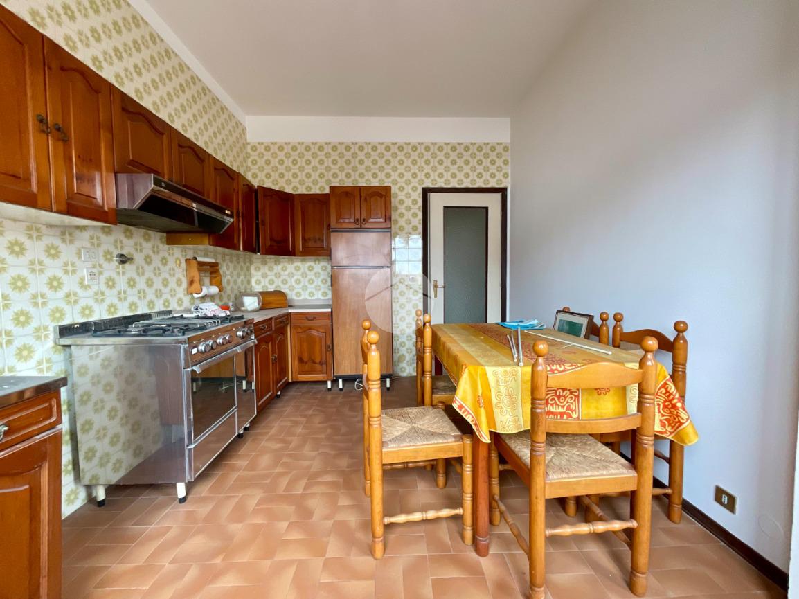La cucina abitabile, dotata di finestra e porta-finestra con accesso al balcone, è separata dal soggiorno doppio, anch'esso servito da finestra e porta-finestra (porta zoppa) che conducono al secondo balcone. Entrambi gli affacci garantiscono un'ottima luminosità naturale e rendono gli ambienti accoglienti e ben arieggiati.