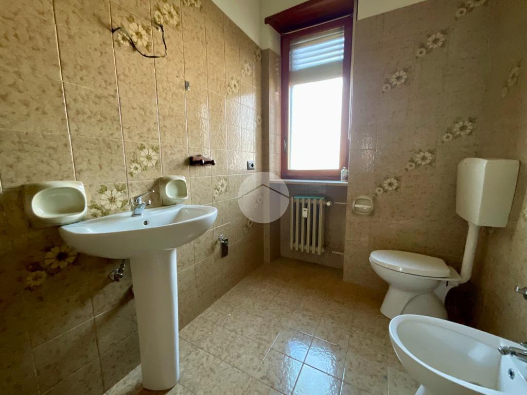 Il bagno, finestrato, è completo di sanitari, doccia e attacchi per la lavatrice. A completare la proprietà vi sono un comodo ripostiglio interno e una cantina al piano seminterrato.