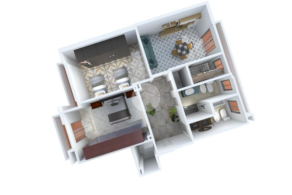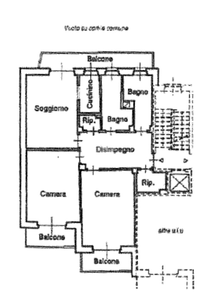 L’ingresso, accessibile dal portoncino, distribuisce in modo funzionale i vari ambienti. La zona giorno è composta da un ampio tinello con cucinino finestrato, dal quale si accede al primo e lungo balcone con affaccio sul cortile. Le due camere da letto, entrambe dotate di balcone, risultano particolarmente luminose grazie alle porte finestre che favoriscono un’ottima illuminazione naturale. Completano la soluzione due ripostigli e due bagni, uno con doccia e l’altro con vasca.