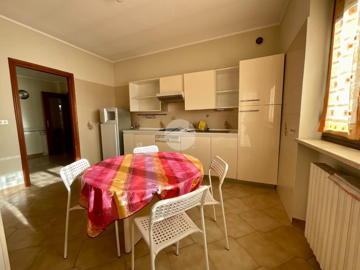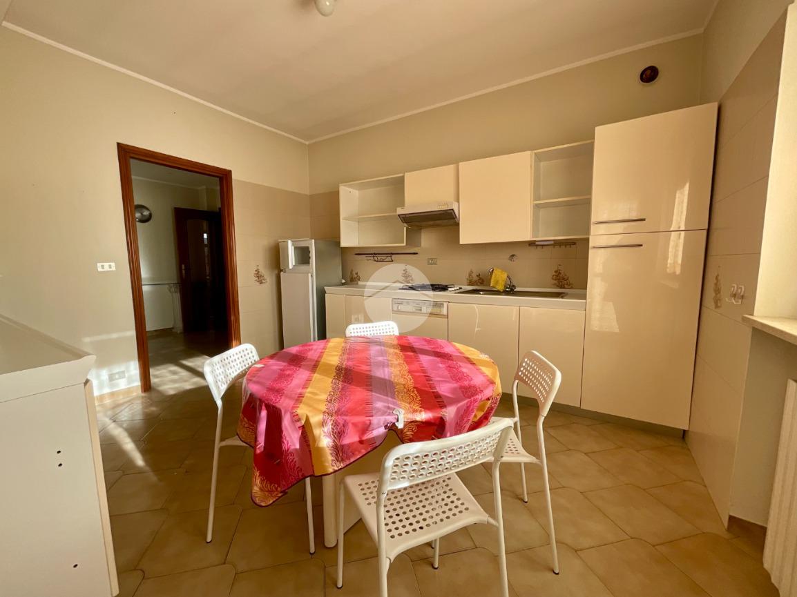 L’ingresso conduce a un ampio e luminoso soggiorno, valorizzato dalla presenza di una finestra e di una porta finestra con accesso al balcone affacciato su Via Montegrappa. La cucina abitabile, di generose dimensioni e separata dal soggiorno, è anch’essa dotata di finestra e porta finestra, con accesso al medesimo balcone.