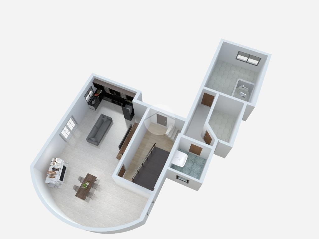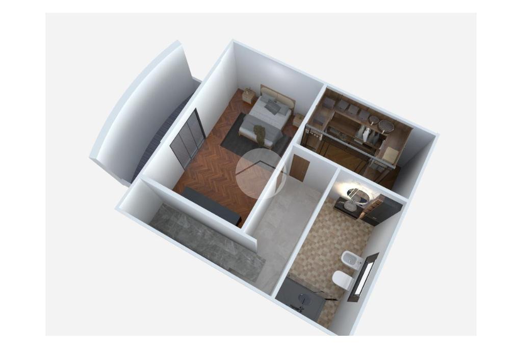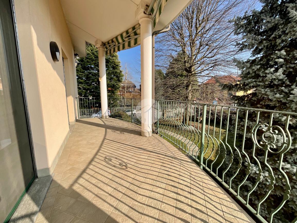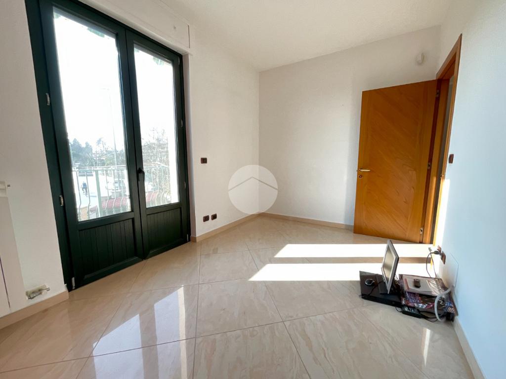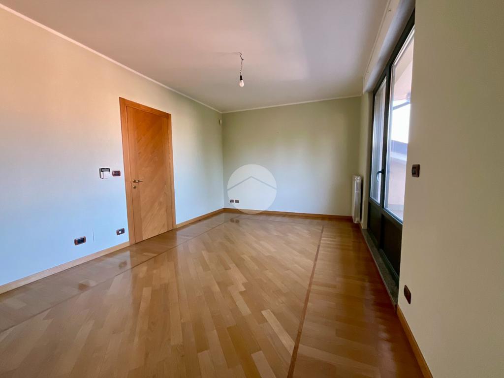 Al primo piano troviamo un ampio soggiorno doppio, caratterizzato da tre finestre con apertura vasistas motorizzata e da due porte finestre che permettono l’accesso al balcone con affaccio sul giardino privato. Dal disimpegno si accede a una stanza con portafinestra affacciata, nella quale sono già predisposti gli impianti per un’eventuale cucina, oltre a un ampio bagno finestrato con sanitari sospesi e doccia.