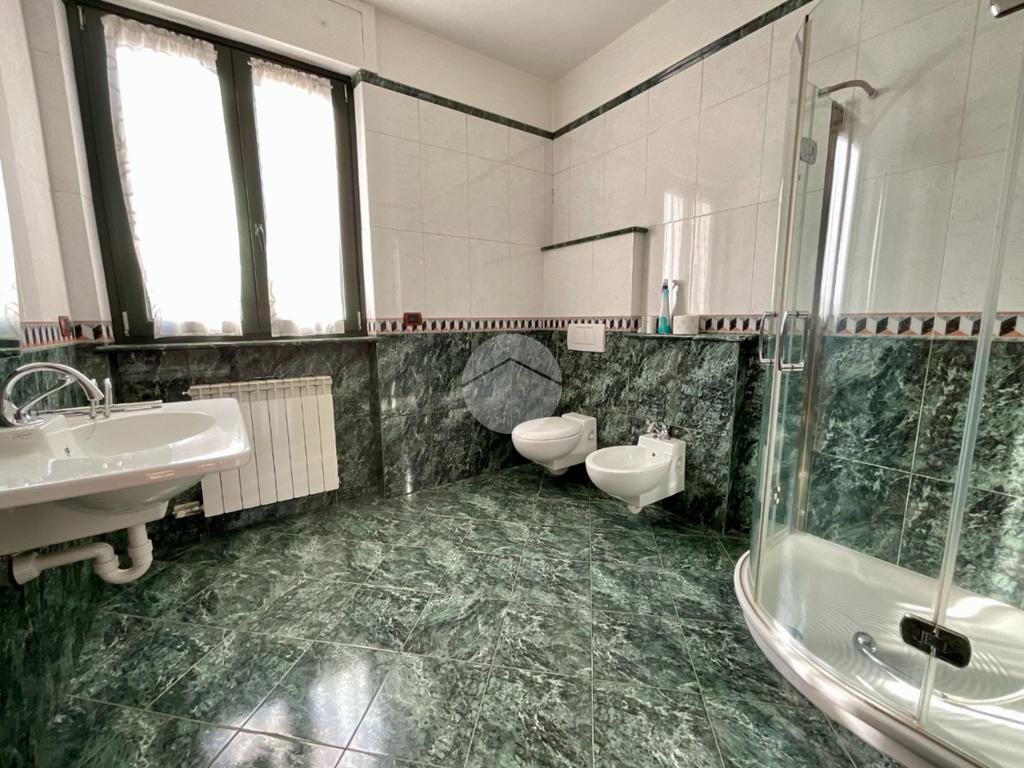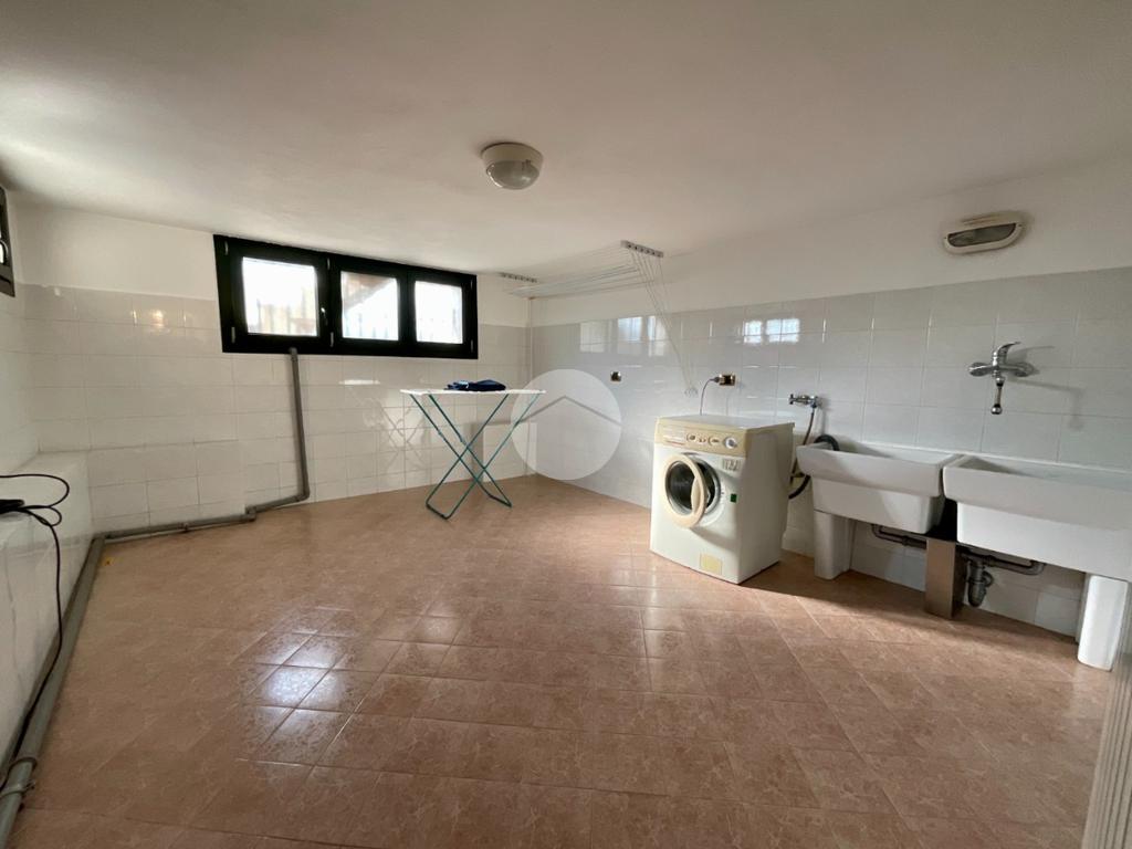 Dal disimpegno del primo piano una seconda scala collega il piano terra, dove sono stati realizzati un’ampia cucina abitabile con finestra e porta finestra che conduce al terrazzo, dotato di tende da sole e tende invernali, e al giardino privato di circa 250 mq e con camino a legna. Sempre al piano terra troviamo inoltre un bagno di servizio, una cantina, una grande lavanderia e un box auto doppio piastrellato, dotato di doppia basculante motorizzata. Dal box è possibile accedere direttamente all’abitazione tramite portoncino blindato.