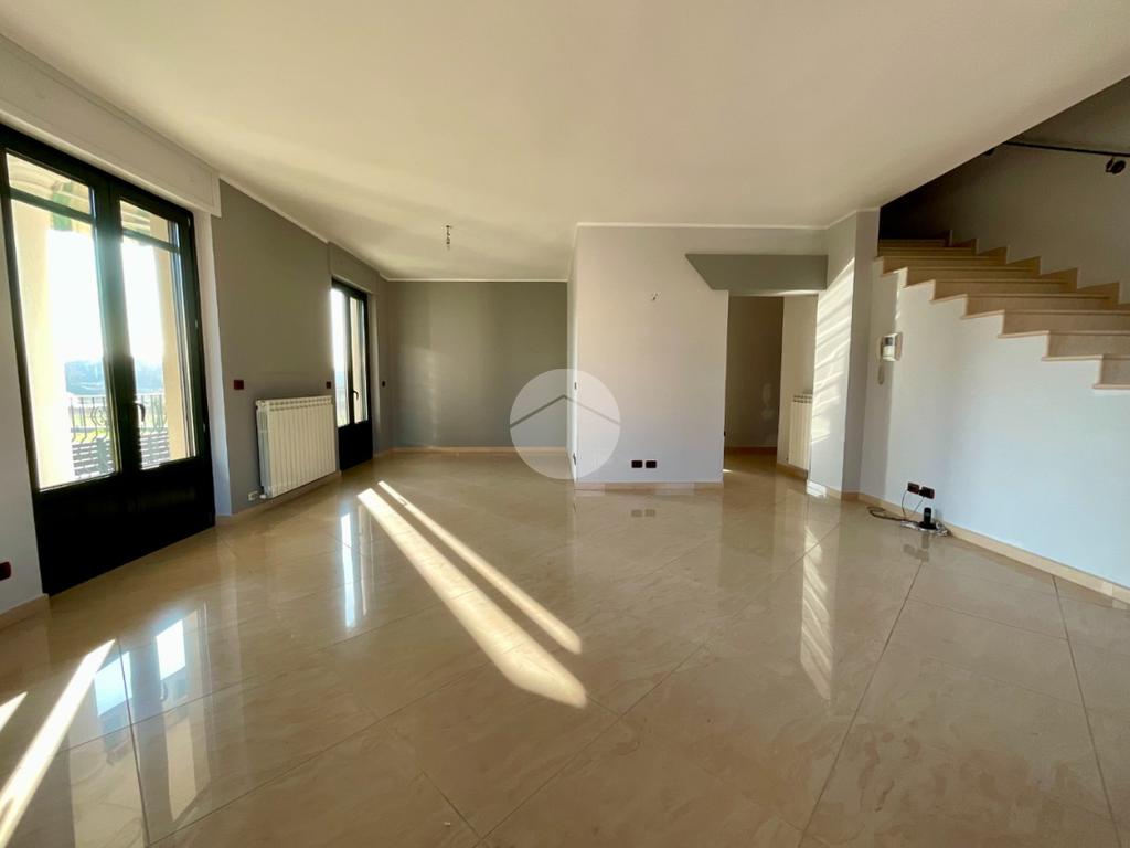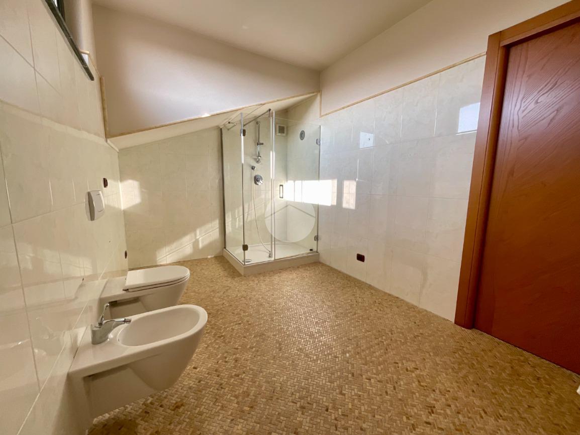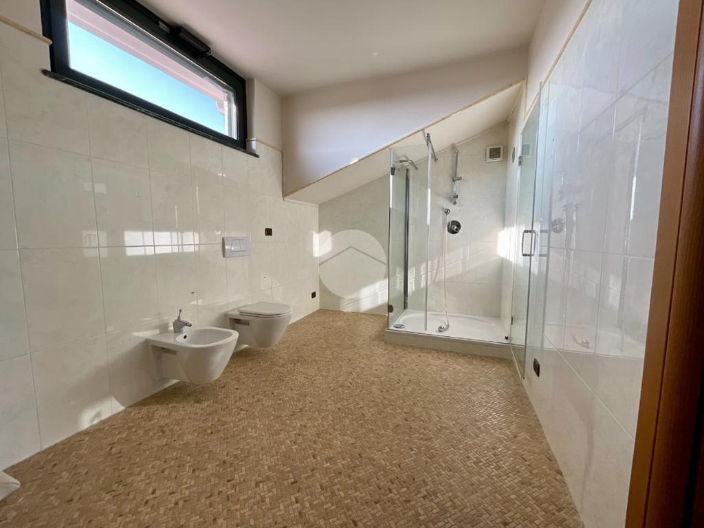 Dal soggiorno una comoda ed elegante scala conduce al piano mansardato, dove sono presenti due camere da letto di cui una dotata di porta finestra che dà accesso al terrazzo, progettato per garantire la massima privacy. Completa il piano un bagno finestrato con apertura vasistas motorizzata, sanitari sospesi e doccia.