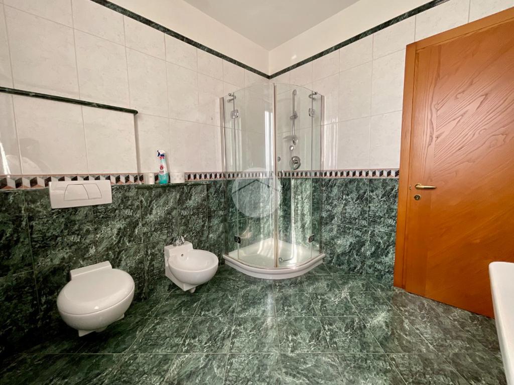 L’immobile è dotato di serramenti in PVC color verde, zanzariere su tutti gli infissi, tende da sole e tende invernali nel terrazzo del piano terra, tende estive sugli altri balconi, tapparelle motorizzate, impianto di antifurto volumetrico e perimetrale, aria condizionata caldo/freddo e sistema di aspirazione centralizzata con unico accumulatore.
